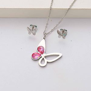 Butterfly crystal stainless steel jewelry sets for women-SSCSG143-34553