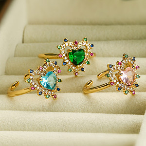 Home>Brass Jewelry>Rings>Elegant Shiny Heart Shape Copper Plating Inlay Zircon 18K Gold Plated Open Ring