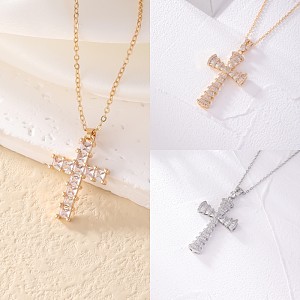 - Product Name: Retro Simple Style Cross Copper Gold Plated Zircon Necklace Pendant In Bulk